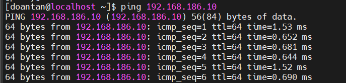 ping 192.168.186.10 # IP máy Ubuntu DHCP Server