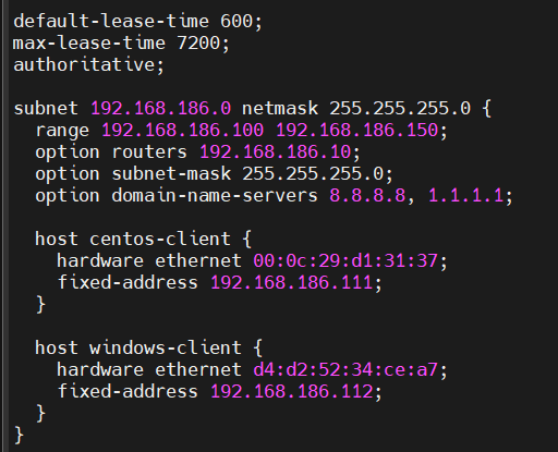 subnet 192.168.186.0 netmask 255.255.255.0 {
