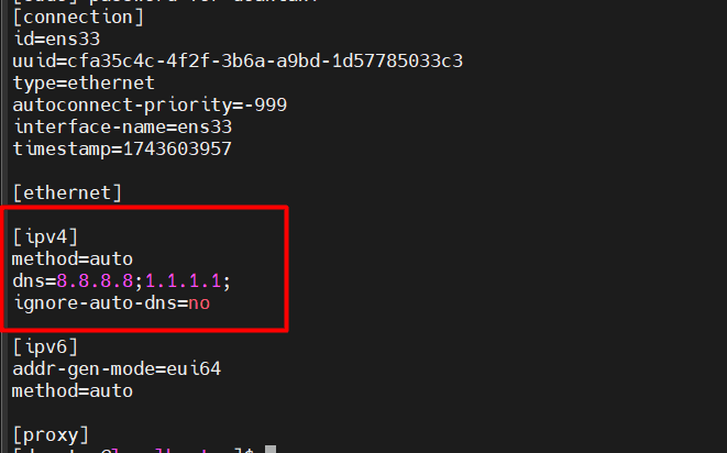 sudo vim /etc/NetworkManager/system-connections/ens33.nmconnectionSửa thành:
