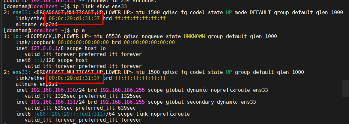 ip link show ens33Hoặc:
