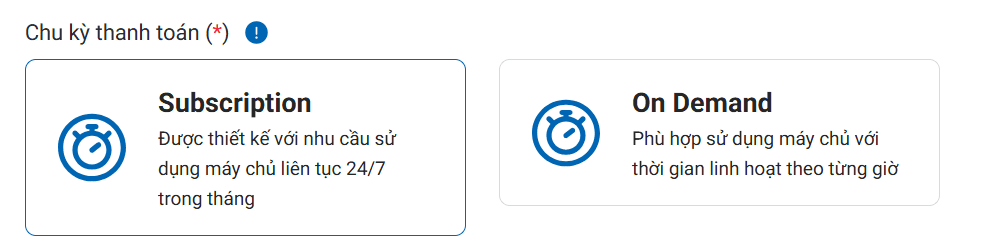 Chọn kế hoạch thanh toán phù hợp với đặc thù nhu cầu sử dụng máy chủ của Quý khách. Lựa chọn giữa: Subscription và On demand
