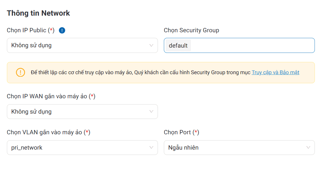 Nếu khách hàng có nhu cầu thay đổi hoặc bổ sung loại máy chủ khác, vui lòng truy cập chức năng Điều chỉnh VPC để thực hiện trước khi khởi tạo máy ảo.